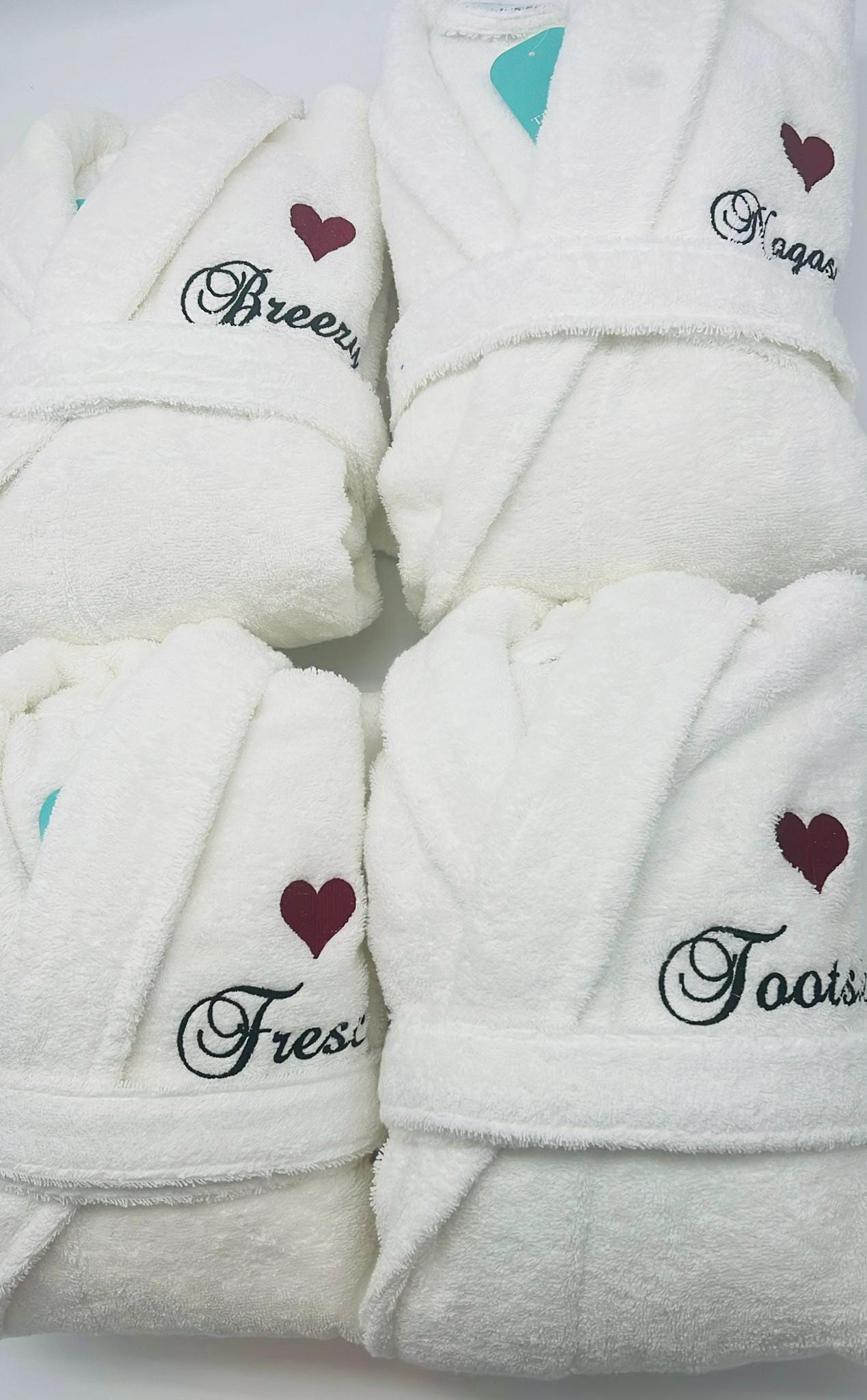 They take the garment out of the bag, inspect the garment and get it ready for the embroidery. In the meantime, another person creates the design of your embroidery on a PC and sends it to a designated embroidery machine. Once the embroidery is complete it is cleaned from any embroidery material and carefully inserted into its original bag. If gift wrap is ordered, package is gift wrapped as well. All the work is done very carefully and with love. There is no automation involved. It is all custom and we take every single order seriously.