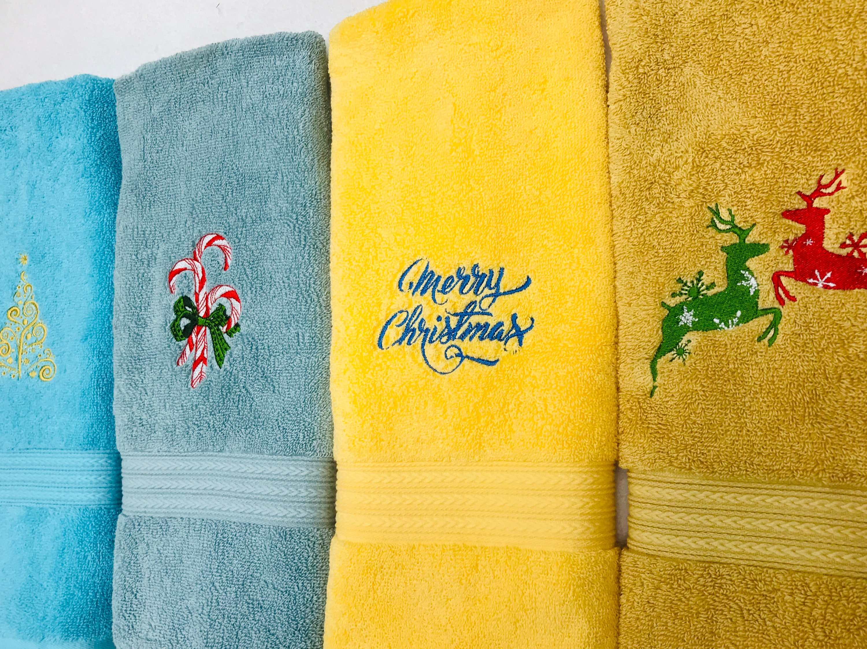 Christmas Bath Towels, Personalized 100% Egyptian Cotton, Monogrammed Gift Towel, Christmas and Holiday Gift, Custom Embroidered